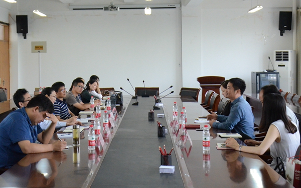 On June 7, Chair of the University Council, Cai Jingmin, welcomed Shao Qingdong, Chair of Beijing Logis Sci Tech Development Co., Ltd., and his group members. Shao and Cai had a talk over the project of co-building a logistics lab in Management Department, HFU. The staff concerned participated in the discussion.