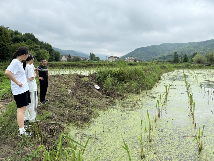 7月11日,社會實踐團隊來到梨山茭白基地。基地負責人易群介紹了當地茭白種植情況。據了解,當地政府高度重視茭白產業,通過開展技術培訓、給予資金支持等舉措,助力當地村民提高種植水平和管理水平,從而實現增產致富、脫貧致富。穿梭在綠意盎然的茭白田間,團隊成員不僅見證了農業發展的新氣象,也感受到了鄉村振興戰略引領下農村建設發展的生動實踐。