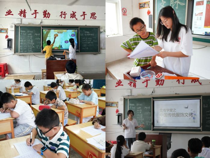 語言文化與傳媒學(xué)院暑期“三下鄉(xiāng)”實(shí)踐團(tuán)隊(duì)志愿者們組建“愛灑鄉(xiāng)村 教育同行”教學(xué)團(tuán)隊(duì)。教學(xué)團(tuán)隊(duì)分為書畫組、英語組、國學(xué)組和歌舞組。教學(xué)內(nèi)容以傳統(tǒng)文化為主,教學(xué)時(shí)間從7月6號持續(xù)到7月13號。