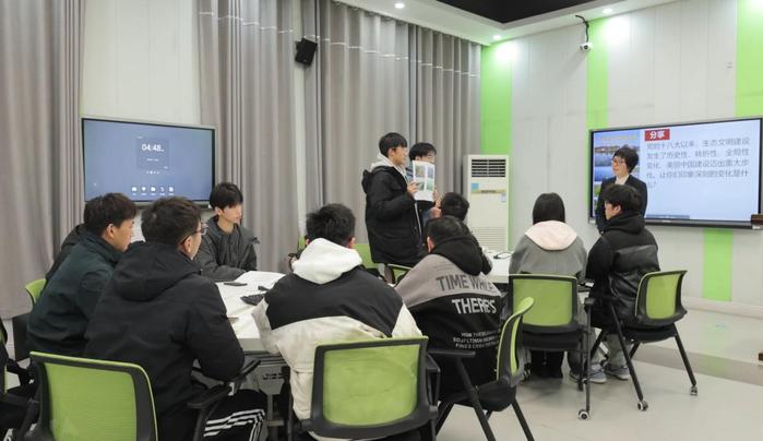 為了把艱深的理論講徹底、講生動,進一步發揮黨的創新理論固本培元、凝心鑄魂的作用,胡彩林深入系統地進行理論研習、學情分析、策略設計、實施考評、反思整改,努力增強思政課的針對性和吸引力。課前五分鐘,胡彩林總會提前到達教室,完成師生之間的互動“小游戲”。學生圍繞國內外時事熱點進行演講,再由老師點評,當學生的觀點比較片面時,她會結合學生的理解進行有理有據的引導。師生協同打造了習言習語分享、時事新聞短評、大學生講思政課、主播說聯播、今天我來說等一批充滿趣味的研討教學品牌。