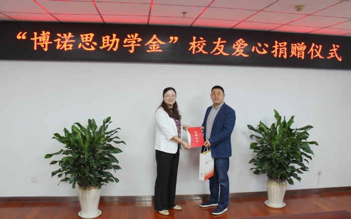 10月11日,我校舉行“博諾思助學金”校友愛心捐贈儀式。安徽博諾思信息科技有限公司執行董事、2004屆電子信息工程專業校友徐超峰,安徽中德教育合作基金會管理辦公室主任劉金平,先進制造工程學院黨委書記杜娟及相關教師參加捐贈儀式。儀式由杜娟主持。