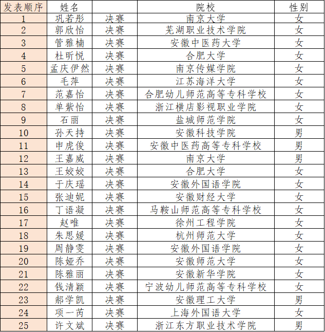 二、參加決賽現(xiàn)場(chǎng)演講的選手名單序號(hào)即為演講順序