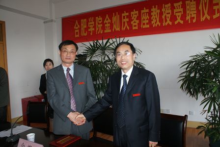 陳院長為金教授佩戴合肥學院?;?/p>