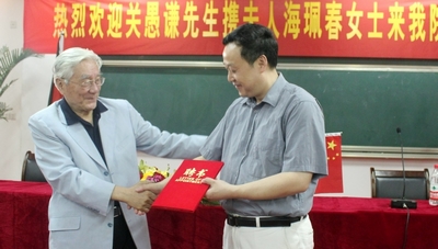 據悉,關愚謙先生為德國漢堡大學教授、文學博士、記者、作家,掌握中英德俄等多種語言、現任中德文化交流協會會長、上海對外文化交流協會理事等職務。同時,他也接受過中央電視臺第一頻道、浙江電視臺等多家媒體的采訪,并發表過《中國文化指南》《德國萬象》等著作。其妻子海佩春是德國作家、小說家、漢學家,為中德友誼做出了重要貢獻。(院新聞中心學生記者  張夏云  方雨琦  傅超群)