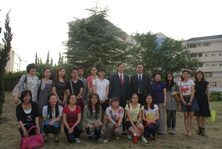 雙方合影留念(左五:安總基領(lǐng)事) 參觀金夏中大使親手種植的友誼樹 觀看我院校園建設(shè)規(guī)劃效果圖 學(xué)生代表提問,安總基領(lǐng)事一行給予了詳細(xì)回答
