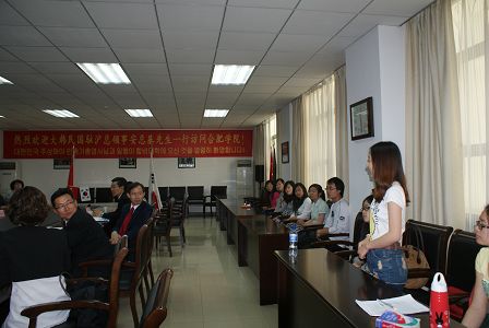 座談會(huì)上,我院與會(huì)的朝鮮語專業(yè)和對(duì)外漢語專業(yè)學(xué)生代表同安總基領(lǐng)事一行進(jìn)行了交流。安總基領(lǐng)事高度評(píng)價(jià)我院學(xué)生學(xué)習(xí)的熱情及韓語口語的標(biāo)準(zhǔn)和流利。