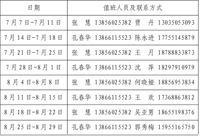 一、暑期輪休時間為:7月5日—8月31日,9月1日(周一)正式上班。