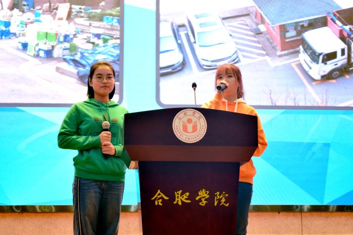比賽中,選手們依次登臺亮相展現(xiàn)演講風(fēng)采,演講主題多樣分明,從韓國美食、傳統(tǒng)文化到韓國諺語、熱播影視劇等均有涉及。同時,選手們還通過唱歌、跳舞、展示圖片等多種形式展示演講主題,為比賽增添亮點。其中,來自合肥學(xué)院的陳芷涵、汪高潔采用情景對話的方式,結(jié)合韓劇中的片段講述了《韓國人的垃圾分類》,語言歡快流暢,帶動現(xiàn)場氣氛。安徽工業(yè)大學(xué)的何嫣然介紹了《韓國電視劇》,并列舉了幾個近年來影響較大的韓劇,精彩的演講贏得了現(xiàn)場觀眾陣陣掌聲。