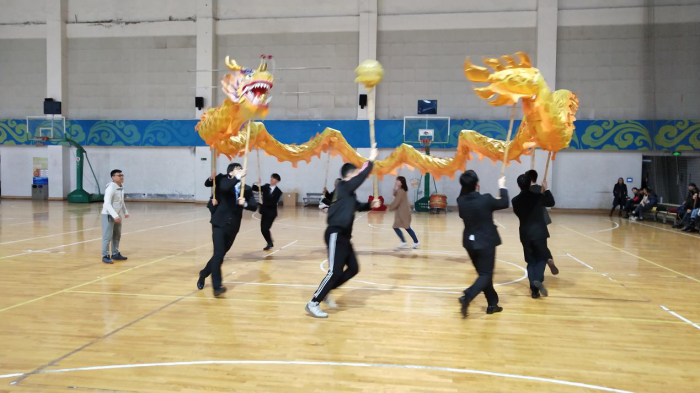 會見結束后,札幌大學訪問團和我校外國語學院東語系的同學共同觀摩了由合肥學院體育俱樂部的同學表演的舞龍、舞獅和武術,并在公體部毛獻亮老師的指導下,親身體驗學習了舞龍和太極拳。在一招一式的學習體驗中,日本學生對中國文化有了更切身的感受和認識。