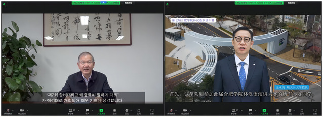 11月30日,由合肥學院主辦、韓國順天鄉大學承辦的第七屆“合肥學院杯”漢語演講大賽在韓國順天鄉大學成功舉辦。來自韓國釜山外國語高中、釜山觀光高中和仁川圣源高中等12所高中院校的韓國學生參賽,18名選手進入決賽。黨委書記王其東和韓國順天鄉大學校長金承禹通過視頻參加決賽開幕式并致辭。