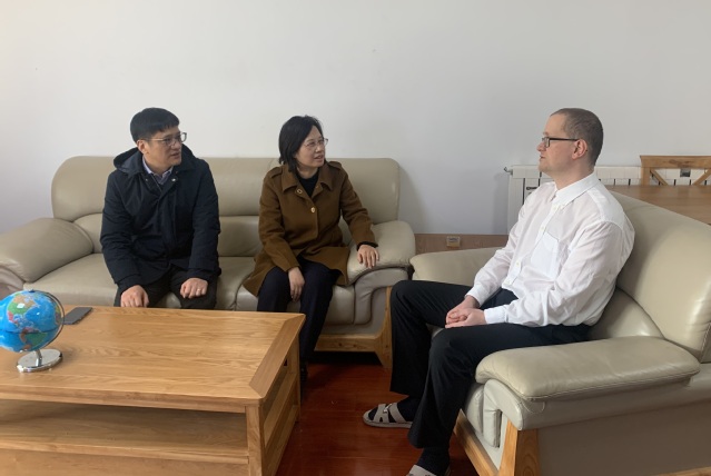 117日上午,在中國(guó)傳統(tǒng)佳節(jié)春節(jié)來(lái)臨之際,吳春梅校長(zhǎng)看望慰問(wèn)假期留校的德籍專(zhuān)家湯衛(wèi)思(Thomas Weise)教授,為他送去親切慰問(wèn)和新春祝福。國(guó)際交流合作處處長(zhǎng)、中德人才交流中心主任張慧等人陪同看望。