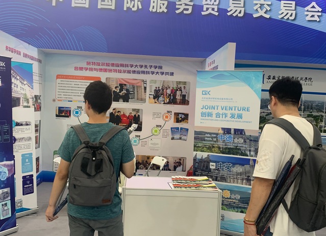 2023年8月30至9月6日,我校應邀參加在北京首鋼園舉辦的2023年中國國際服務貿易交易會教育服務專題展。本次服貿會以“開放引領發展,合作共贏未來”為主題,國家主席習近平在服貿會全球服務貿易峰會發表視頻致辭。教育服務專題展設置國際交流與合作、人工智能與科技賦能、教育服務與實踐創新等重點內容,集中展示教育服務領域的新技術、新成果、新場景和新業態。我校充分展示了學校近年來在國際合作與交流、尤其是中德合作、來華留學、孔子學院等領域的特色和優勢資源,受到各級領導、國內外合作商及廣大訪客的高度肯定和積極關注。