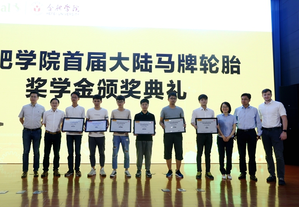 會上,王曉峰宣讀了大陸馬牌輪胎獎學金獲獎學生名單,介紹了大陸馬牌輪胎獎學金在我校設置的總體情況;王小驥等公司領導為獲獎同學頒發獎學金證書。