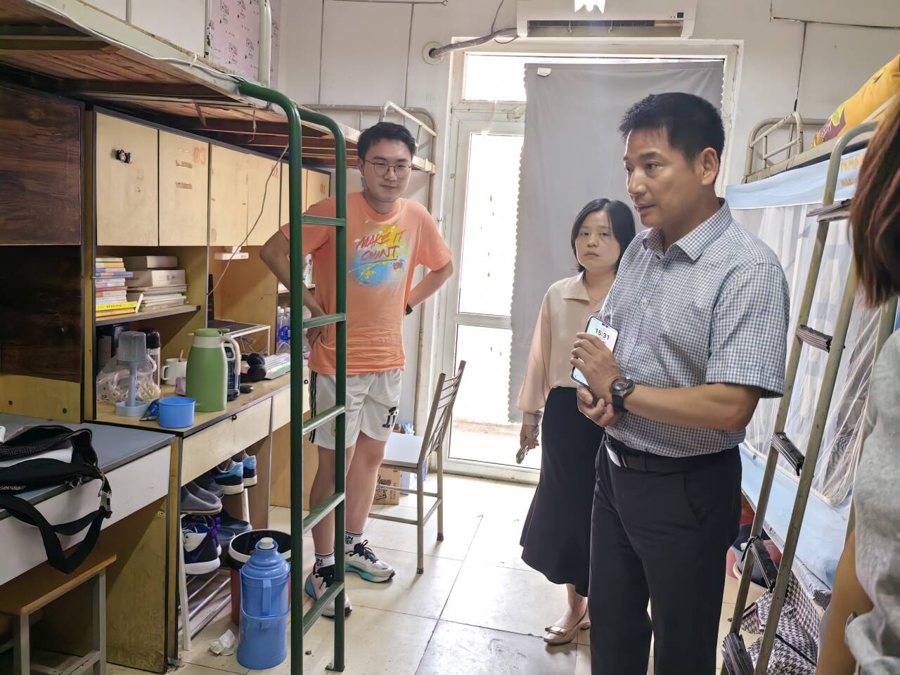 整體上,經(jīng)管男生宿舍衛(wèi)生情況有較大改善,部分宿舍存在雜物較多、衛(wèi)生間異味等問題,走訪老師現(xiàn)場發(fā)現(xiàn)問題、現(xiàn)場督促整改。