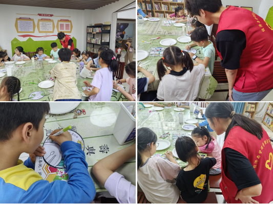 科普課堂結束后,便迎來了孩子們期待已久的“光盤行動”主題創意手工環節。志愿者們巧妙地將涂色游戲與手工制作相結合,為孩子們帶來了一場創意與樂趣的盛宴。小朋友們先是拿起彩筆,在印有餐盤、食物圖案的畫紙上認真填涂,一幅幅色彩斑斕的“美食”圖在他們的小手下逐漸呈現。隨后,孩子們將完成的涂色畫小心翼翼地粘貼在白色紙盤上,制作成獨具創意的“光盤承諾盤”。過程中,志愿者們耐心細致地指導著每一個步驟,還結合手工制作的過程,用通俗易懂的語言再次向孩子們強調“吃多少盛多少”的理念,引導孩子們從自身做起,養成節約糧食的好習慣。