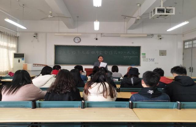20191128日,經濟與管理學院分黨校第一期發展對象及預備黨員培訓班第四次培訓順利開展,本次黨課培訓為各學生支部圍繞“學習黨的十九屆四中全會精神”的主題進行自學分組討論環節,各學生支部書記主持培訓。
