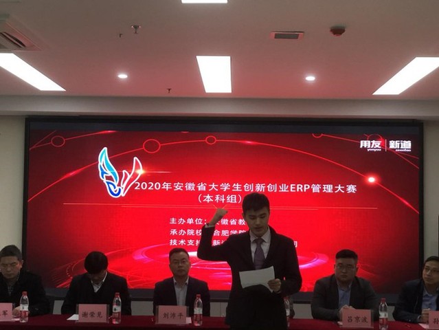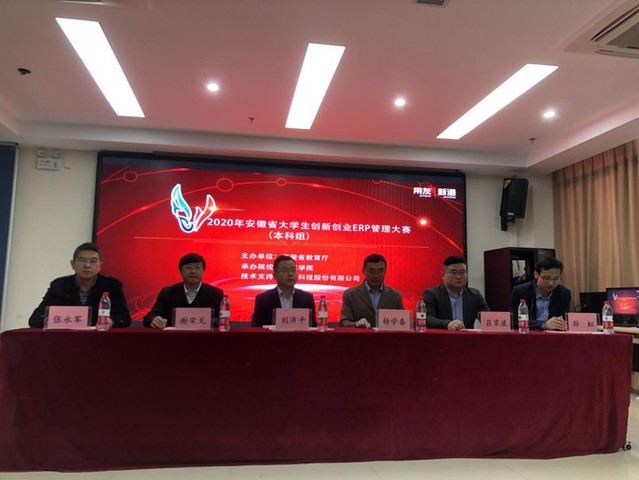 11月7日,由安徽省教育廳主辦,合肥學(xué)院承辦的2020年安徽省大學(xué)生創(chuàng)新創(chuàng)業(yè)ERP管理大賽在我校舉辦。安徽省大學(xué)生創(chuàng)新創(chuàng)業(yè)教育辦公室主任、合肥學(xué)院大學(xué)生創(chuàng)新創(chuàng)業(yè)教育中心主任劉沛平,合肥學(xué)院經(jīng)濟(jì)與管理學(xué)院黨總支書記楊學(xué)春、副書記張永軍,安徽工程大學(xué)經(jīng)濟(jì)管理學(xué)院院長(zhǎng)謝榮見,新道科技股份有限公司安徽區(qū)總經(jīng)理呂京波等出席大賽開幕式,開幕式由大學(xué)生創(chuàng)新創(chuàng)業(yè)教育中心副主任孫虹主持。