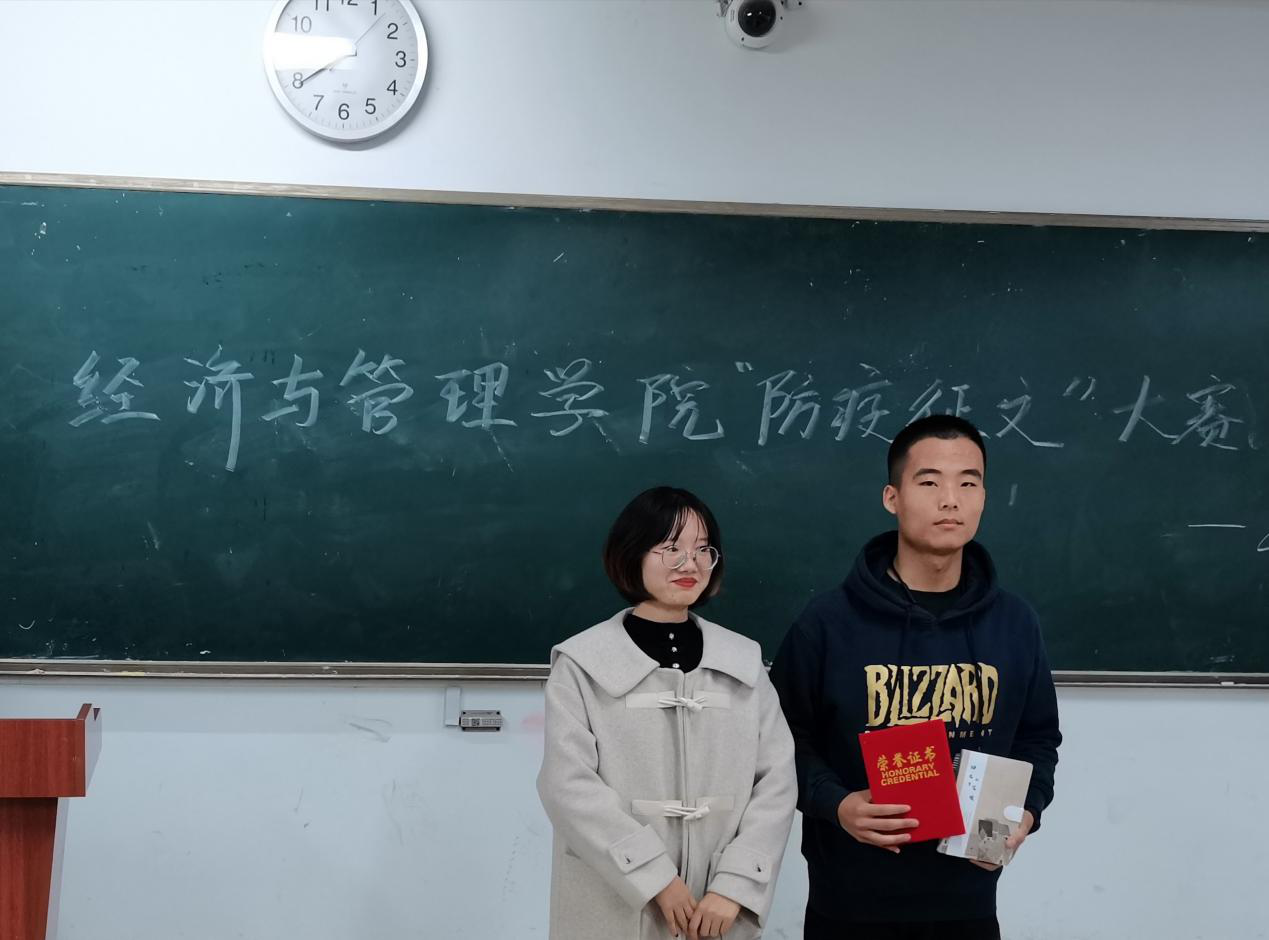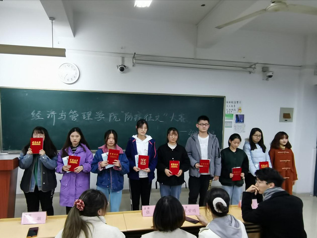 2020年11月29日,經濟與管理學院“防疫征文”大賽頒獎儀式于我校一區博學樓B座303教室順利舉辦,經濟與管理學院學生會主席團全體成員及全體獲獎學生參加了此次頒獎儀式。