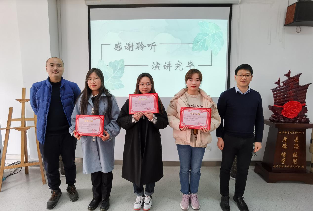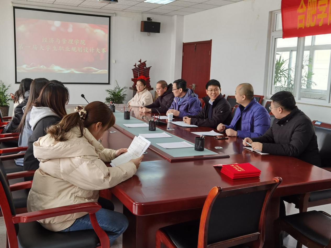 2020年12月24日,經(jīng)濟(jì)與管理學(xué)院第一屆職業(yè)規(guī)劃設(shè)計大賽于我校博學(xué)樓B座二樓會議室順利舉辦。本次大賽由經(jīng)濟(jì)與管理學(xué)院黨委書記楊學(xué)春、安徽五十六鋇教育科技有限責(zé)任公司總經(jīng)理宋紅彪以及經(jīng)濟(jì)與管理學(xué)院老師王晨森、于昊、陳維浩、劉丹青擔(dān)任評委,經(jīng)濟(jì)與管理學(xué)院部分學(xué)生推選參賽。