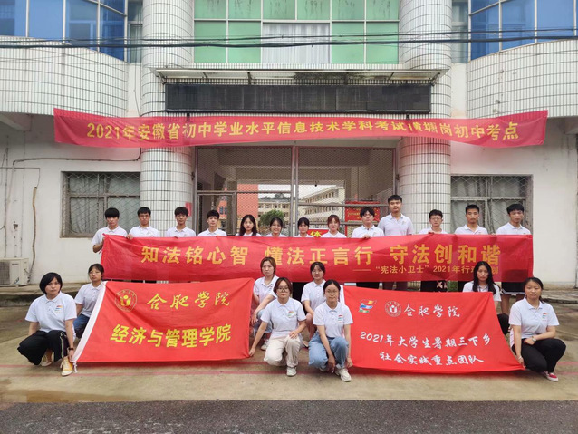 為讓鄉村人民更加全面了解憲法,上午,合肥學院經濟與管理學院暑期三下鄉TWENTY研夏團隊于六安市金安區橫塘崗鄉衛生院開展了“憲法小衛士”的調研活動。在橫塘崗鄉衛生院里,團隊成員向不同年齡段的青少年發放問卷,調查他們對憲法的了解程度與看法理解,并向附近村民普及憲法知識,向他們介紹憲法的由來、地位、作用,制定和修改憲法的原則等內容以及了解憲法的途徑以及如何運用憲法保護自身合法權益。活動結束之際,全體成員在橫塘崗鄉中學前合影留念。