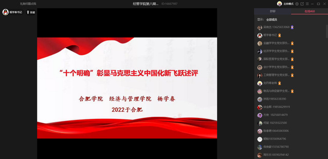 經濟與管理學院第六期入黨積極分子培訓班線上第一課——“十個明確”彰顯馬克思主義中國化新飛躍的評述