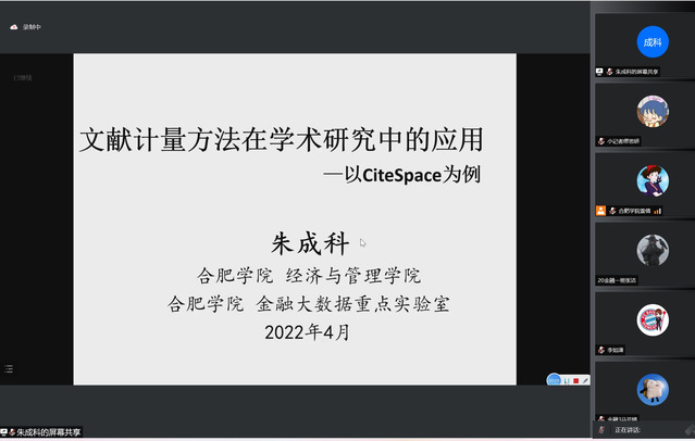 4月29日下午,經濟與管理學院第五期南艷湖青年學者論壇在線上舉行,經濟與管理學院朱成科博士作了題為《文獻計量方法在學術研究中的應用——以CiteSpace為例》的學術報告,經濟與管理學院全體研究生等100余名師生線上參會。