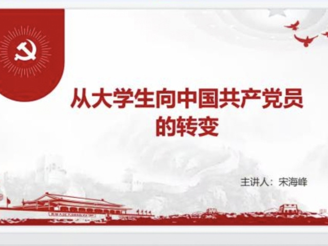 宋老師從共產黨的理想和信念、行動與堅守、付出與回報以及愛國主義精神四個方面引入本次課程的講授。首先,宋老師結合黨的光輝歷史和黨員的光榮事跡,向同學們講述一個光榮的中國共產黨員所應該具備的美德與素養,并以習近平總書記紀念五四運動100周年中的重要講話作為大學生向中共黨員轉變的第一點要求——樹立遠大的理想目標,負有明確的責任意識。其次,他結合我院學子實際情況,告訴同學們要以團總支學生會、班級團支部等為平臺,善于學習和總結,注意處理好工作與學習生活的關系,統籌重點發展與全面發展。宋老師向全體學員強調,想要收獲必定需要付出,入黨積極分子應在各個方面嚴格要求自己,在學業上刻苦勤奮,在生活中幫助同學,積極發揮領頭人作用。最后,宋老師號召同學們不斷提升自己的行為素質和政治素養,將愛國主義精神深入骨髓,堅持以習近平總書記對廣大青年的諄諄教誨為引,堅定不移聽黨話、跟黨走,努力成長為堪當民族復興重任的時代新人。