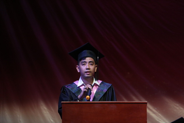 留學(xué)生畢業(yè)生代表黃明方同學(xué)發(fā)言,回顧在合院的四年留學(xué)時光,表示中國和柬埔寨是鐵桿朋友和命運共同體,兩國人民永遠手拉手、心連心。