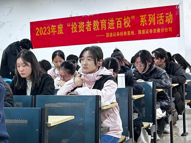 為培養(yǎng)學(xué)生的投資意識(shí)和能力,2023年11月17日下午,“投資者教育進(jìn)百校”系列活動(dòng)于我校一期四棟307教室成功召開。該講座由國盛證券吳文濤先生主講,我院學(xué)子積極參加本次活動(dòng)。