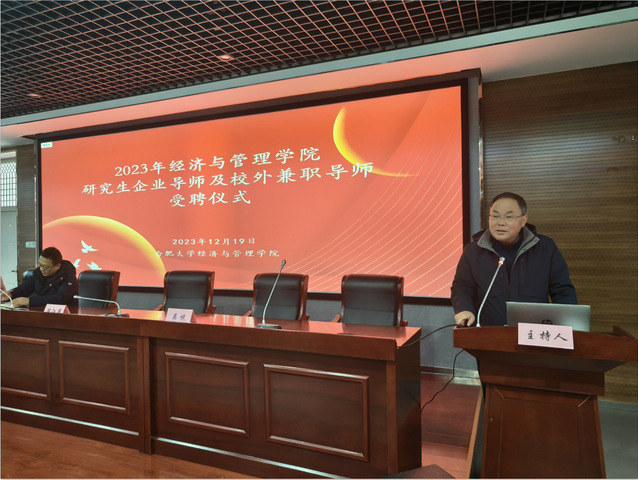 12月19日下午,經(jīng)濟(jì)與管理學(xué)院于一期六棟一樓學(xué)術(shù)報(bào)告廳隆重舉行研究生校外兼職導(dǎo)師與企業(yè)導(dǎo)師聘任儀式。經(jīng)濟(jì)與管理學(xué)院領(lǐng)導(dǎo)、校外兼職導(dǎo)師及企業(yè)導(dǎo)師、校內(nèi)導(dǎo)師代表、投資金融系系主任、財(cái)務(wù)會(huì)計(jì)系系主任、金融和會(huì)計(jì)專碩點(diǎn)負(fù)責(zé)人出席會(huì)議23級(jí)金融專碩和會(huì)計(jì)專碩研究生參與會(huì)議,聘任儀式由副院長(zhǎng)吳悅主持。