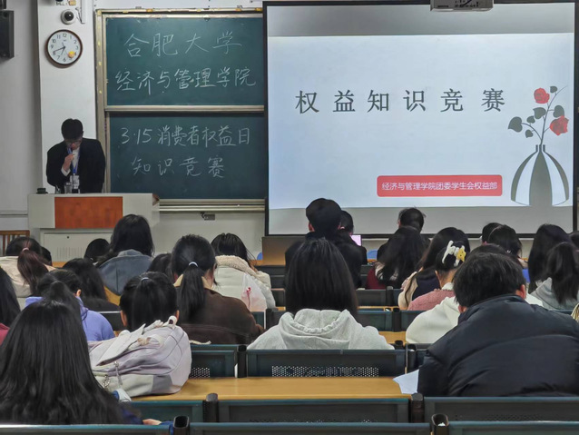 為助力我院學生增強維權及法律意識,切實維護自身合法權益,3月15日晚經濟與管理學院于一期5棟101教室舉辦消費者權益日知識競賽。