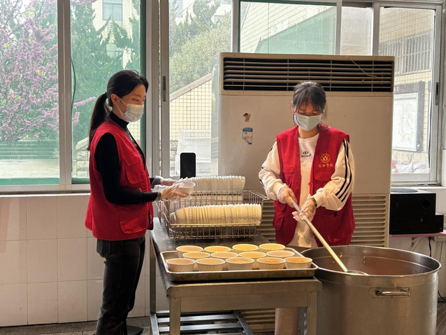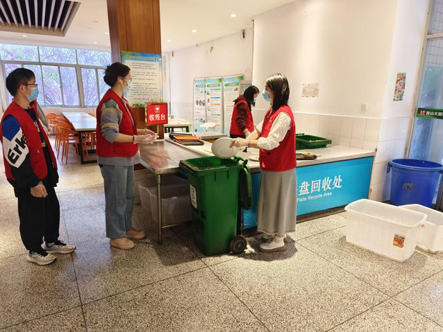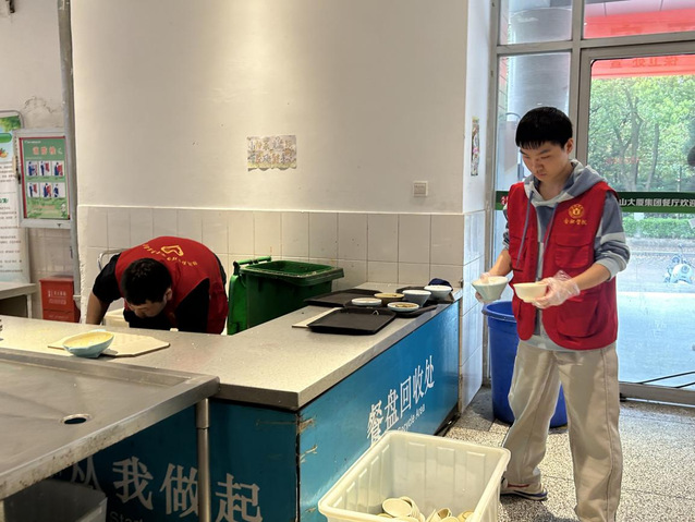 活動當天,青年志愿者們準時來到食堂開展工作。志愿者們分工進行了打湯、清理餐桌、回收餐盤等工作,并協助食堂阿姨用小推車將餐盤送至后廚。志愿活動有序地進行,就餐的師生對志愿者們的服務表示贊賞。