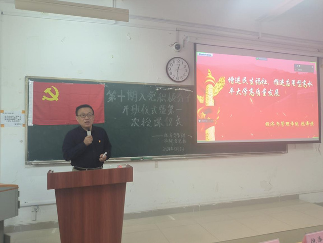開班典禮上,第十期入黨積極分子學生代表23級財務管理三班李琦同學,分享了自己對中國共產黨的深刻認識并承諾在黨課學習中嚴于律己、努力學習。隨后,支部書記陳維浩對本期培訓班學員提出紀律要求,鼓勵學員認真學習,領會黨課知識內涵,并在日常學習、生活等方面爭當先鋒模范。最后,夏丹青副書記作動員講話,她希望同學們珍惜本次黨課學習機會,端正入黨動機,樹立為共產主義事業奮斗終生的理想信念。
