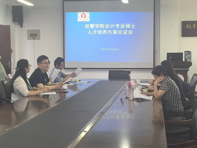 為提高專業(yè)建設(shè)水準與人才培養(yǎng)水平,構(gòu)建高質(zhì)量人才培養(yǎng)體系,5月14日下午,經(jīng)管學院于一期6棟二樓會議室舉辦會計專碩點人才培養(yǎng)方案修改論證會。副院長吳悅出席并主持會議。安徽大學顧光、安徽農(nóng)業(yè)大學孟楓平、天健事務(wù)所張揚等三位校外專家應(yīng)邀蒞臨指導。
