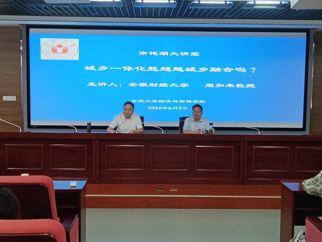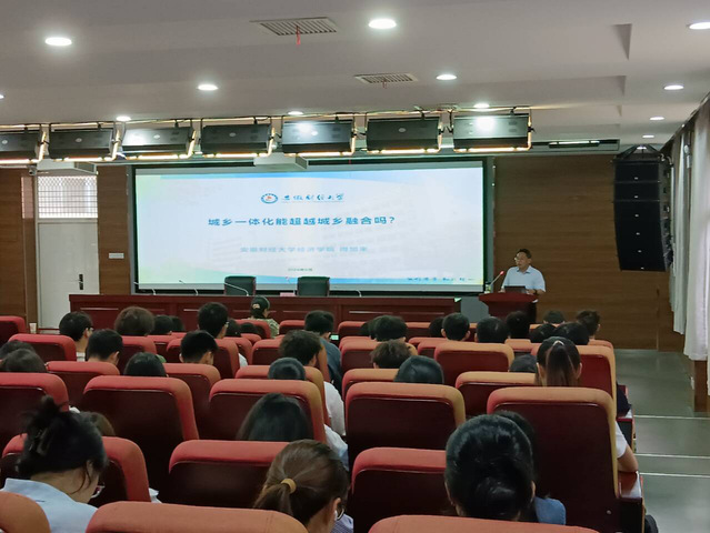 為進一步提升科研氛圍,增強師生科研能力,6月5日下午,經濟與管理學院在6棟一樓學術報告廳舉辦“南艷湖大講堂”。特邀安徽財經大學教授周加來作題為“城鄉一體化能超越城鄉融合嗎?”的學術報告。經濟與管理學院院長陳江華主持,我校師生100余人到場學習。