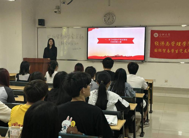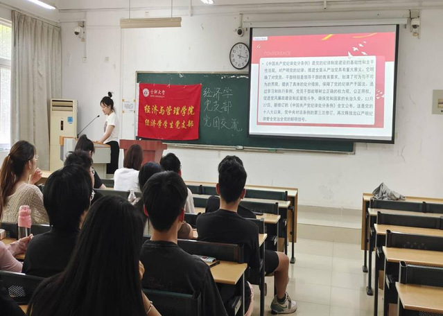 工商管理學(xué)生黨支部組織入黨積極分子交流研討了《中國共產(chǎn)黨紀律處分條例》,入黨積極分子就《條例》中的內(nèi)容進行了分享與交流。會計學(xué)學(xué)生黨支部負責(zé)人為入黨積極分子詳細介紹了《條例》的背景與內(nèi)容,強調(diào)了黨組織紀律的重要性。經(jīng)濟學(xué)學(xué)生黨支部組織入黨積極分子集中觀看了介紹黨章黨規(guī)的相關(guān)視頻,并學(xué)習(xí)了《條例》相關(guān)內(nèi)容。國際貿(mào)易學(xué)生黨支部組織入黨積極分子深入學(xué)習(xí)了《條例》第三章的內(nèi)容。金融學(xué)學(xué)生黨支部負責(zé)人帶領(lǐng)入黨積極分子學(xué)習(xí)了《條例》第一章總則的相關(guān)內(nèi)容。物流與供應(yīng)鏈學(xué)生黨支部帶領(lǐng)入黨積極分子學(xué)習(xí)了《條例》新增、修改的重點條文,隨后開展了黨員先鋒小課堂活動。研究生黨支部重點對《條例》中違紀與紀律處分、紀律處分運用規(guī)則等內(nèi)容進行了學(xué)習(xí)。
