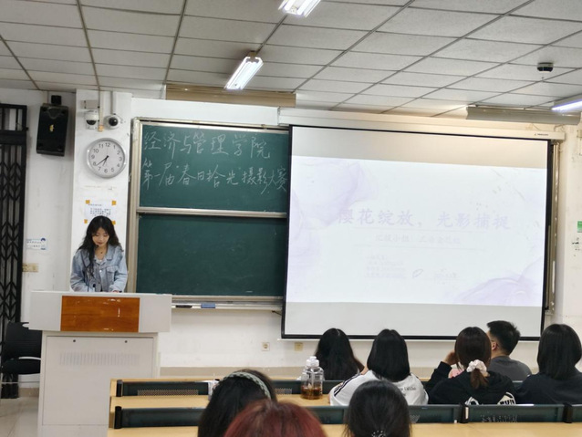 為了進一步展現(xiàn)校園文化生活的繁榮,全面提高我校學(xué)生綜合素質(zhì),5月27日晚,由經(jīng)濟與管理學(xué)院承辦的以“春日拾光”為主題的攝影比賽決賽于一期4-107教室開展。