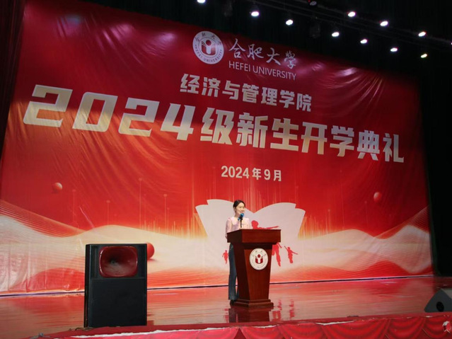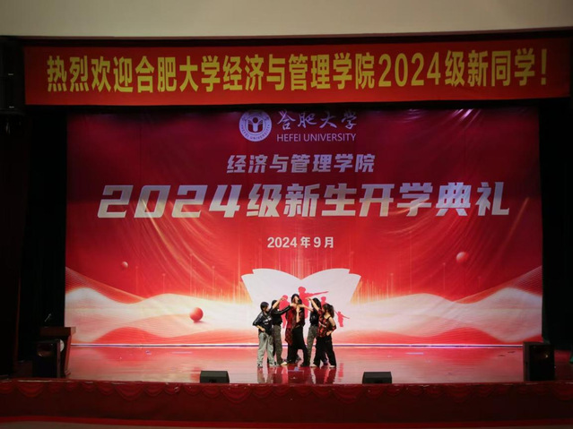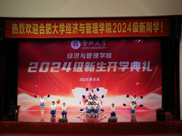 典禮開始前,由啦啦操隊和和舞蹈隊帶來的節目表演拉開典禮序幕,伴隨著莊嚴肅重的國歌,典禮正式開始。24級本科生新生代表陳李潔、24級研究生新生代表徐舒欣分別對未來的校園生活進行了暢想,經管學院學生會主席張毅就大學的學習生活經驗做了分享。隨后,財會系主任鄭姍姍老師對新同學的到來表示熱烈歡迎,鼓勵他們在大學階段奮發向上,最后經管學院院長陳江華為24級新同學帶來開學第一課,勉勵新同學保持積極向上的人生態度,不斷磨練,勇于創新,現場氣氛熱烈。