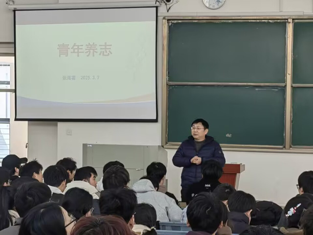 魏安樂以青年當以志為先開篇,結合中國傳統文化中修身齊家治國平天下的理念,深入剖析了青年養志的時代意義。作為海科集團創始人、總經理的09屆校友張海喜學長,從安徽農村走出,曾是大學的普通學生,卻通過錨定目標逐步實現人生跨越。大學期間,他擔任學生會主席、英語俱樂部會長,帶領團隊將零散的社團整合為統一平臺,并斬獲全國英語競賽大獎;畢業后創立粉體行業標桿企業海科集團,推動產學研深度融合,打造校企合作典范。學長以親身經歷詮釋:志向不是空中樓閣,而是每日腳踏實地的堅持。他引用王陽明志不立,天下無可成之事的名言,強調目標對人生的指引作用:就像航海需依北斗,青春的航船若失去志向的羅盤,終將迷失在時代的浪潮中。