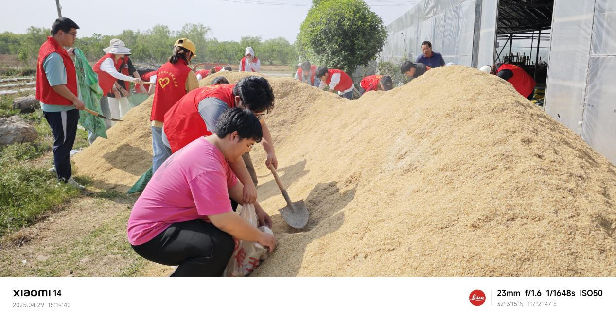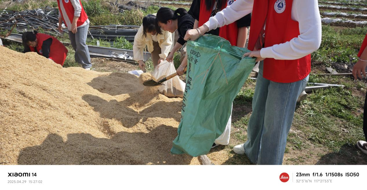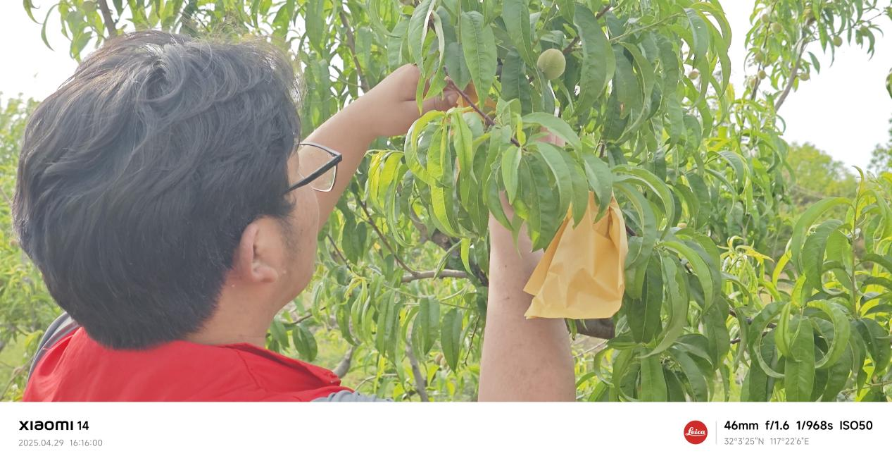 下午兩點半,實踐活動正式開始。志愿者們分成兩個小組,在技術人員指導下先后完成了兩項農事作業。第一項是裝運稻殼,同學們分工協作,有的負責裝袋,有的負責運輸,在汗水中體會團隊合作的重要性。第二項是桃子套袋,這項技術要求細致耐心,同學們認真學習技術要領,小心翼翼地完成每一顆桃子的保護工作。