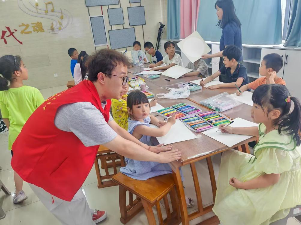5月17日下午兩點半,在朝霞居委會內,來自合肥大學能源材料與化工學院的2名同學與朝霞居委會的美術老師一起教小朋友學習畫畫,激發了小朋友們對美術的熱情。