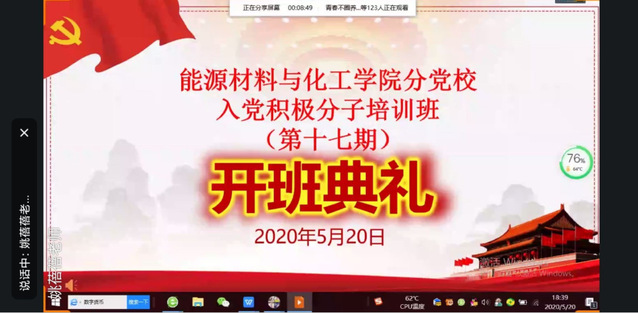 為深入學習貫徹習近平新時代中國特色社會主義,同時響應防控新冠肺炎疫情期間“停課不停學”的號召,能源材料與化工學院分黨校第十七期入黨積極分子培訓班于2020520日晚上六點半在QQ教室順利開課。此次授課由培訓班班主任姚蓓蓓老師主講,參加本次線上學習的共有129名學員。
