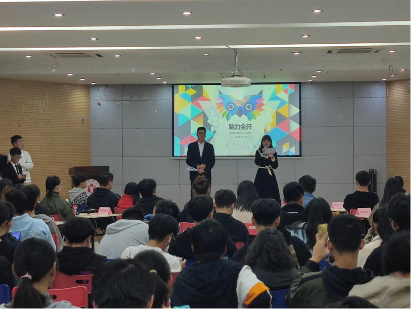2021年11月21日晚六點半,由科創(chuàng)部承辦的“腦力全開”決賽于大學生活動中心如期舉行。出席本次活動的有能源材料與化工學院學生會主席團成員王學智,王承晨,朱穎,江婉以及數(shù)余名同學前來觀賽。