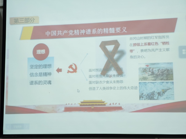 20211231日,馬克思主義學院謝敏芳副教授在生化樓二階梯教室為我院黨員上了一堂題為《中國共產黨人的精神譜系》的黨課。
