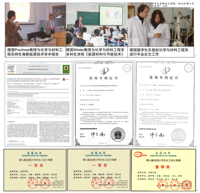 教學科研成果豐富,先后承擔12國家自然科學基金項目、1項教育部重點項目26項安徽省自然科學基金國家與省部級科研項目,安徽省科學技術獎二等獎1、三等獎7,廣西科學技術進步獎二等獎1安徽青年科技獎1項,(中國)非金屬礦工業科技進步獎一等獎1、二等獎1項,(全國)碳酸鈣行業創新獎2,發表SCI/EI收錄論文400余篇,擁有國家授權發明專利十項;教學改革走在前列,擁有國家特色專業1國家戰略性新興產業專業1教育部卓越工程師計劃專業1,安徽省卓越工程師計劃專業2個。多次獲得省級教學成果獎,擁有名師工作室2,省教學團隊1個,建設有《物理化學》省級精品課程。