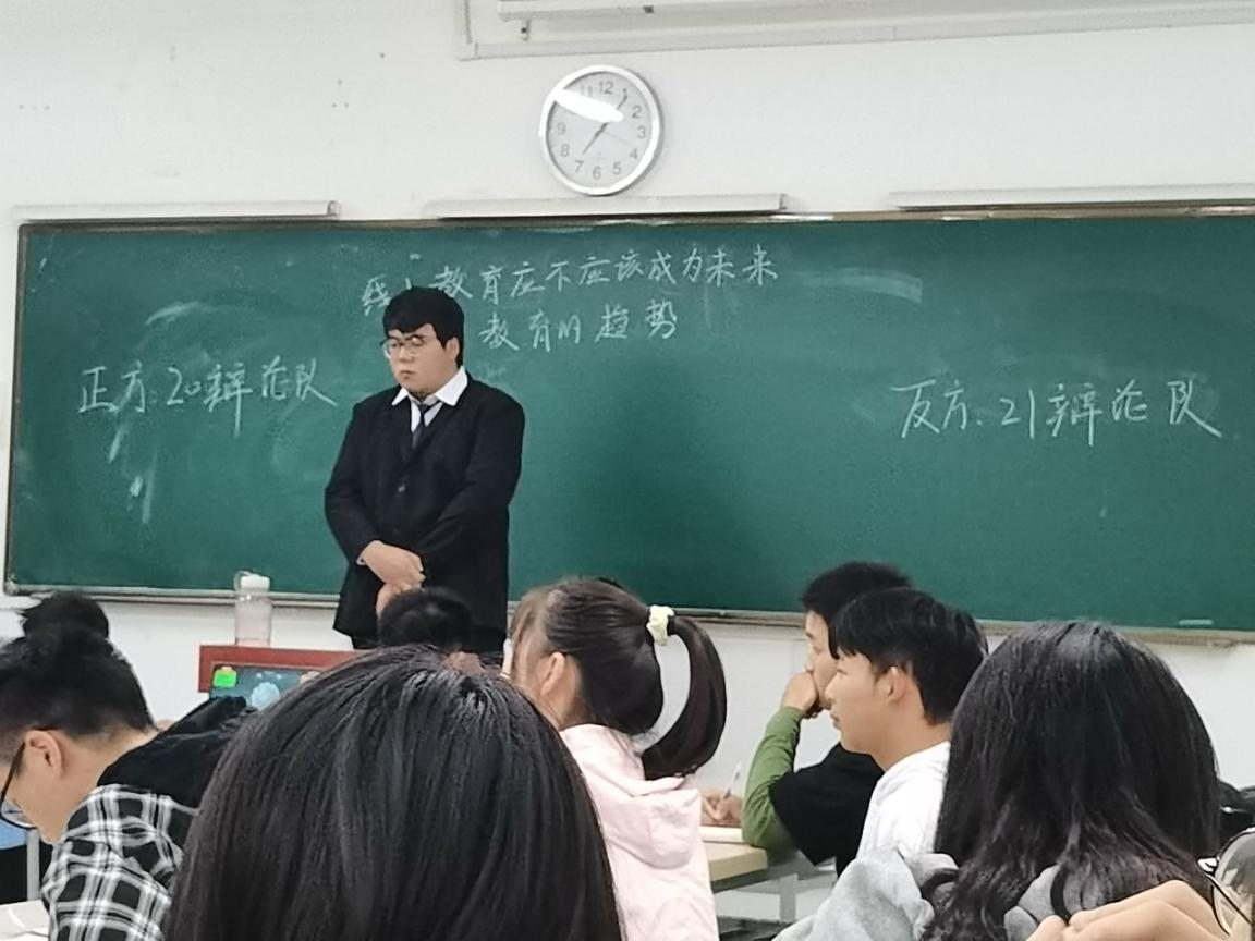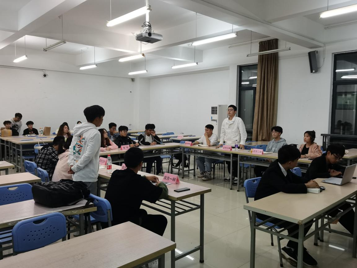 比賽伊始,現場可謂是“無聲之處勝有聲”,火藥味十足;帥氣的裁判,身著正裝,挺拔著身姿;辯手們更有著戰士們一往無前的氣勢。在主持人鏗鏘有力地宣講比賽事宜和雙方辯手進行簡潔的自我介紹后,比賽正式開始。兩隊就線上教育應不應該成為未來的教育趨勢的問題展開辯論。雙方選手在立論,駁立論,智辯等環節中據理力爭,引經據典,字字珠璣,使現場氣氛迅速升溫。在隨后的自由辯中20辯論隊辯手們咬緊牙關,在劣勢的情況下背水一戰。而21辯論隊對對方步步緊逼,力破對手防御,雙方唇槍舌戰。正方言語犀利,反方辯述簡明有力,雙方你來我往,互不相讓的激烈辯論給聽眾帶來了一場視聽盛宴。而經過這場充滿硝煙的角逐,最終以21辯論隊本次比賽中勝出。