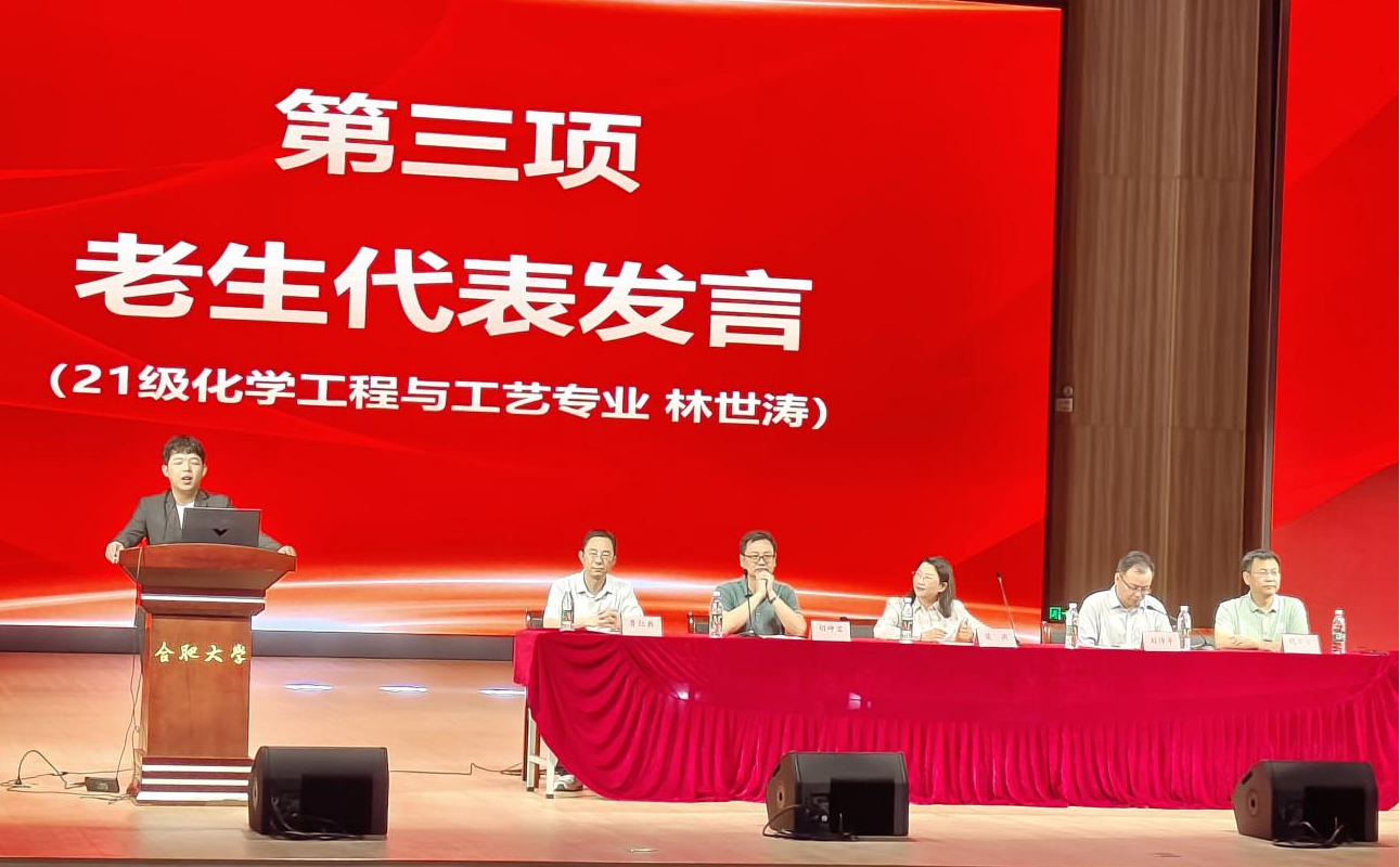 隨后,老生代表2021級化學工程與工藝專業林世濤分享了在學校的學習和生活經驗。他鼓勵新生積極適應新環境,盡快融入大學生活。他強調合理規劃時間,平衡學習、娛樂和社團活動,養成良好的學習習慣,并制定明確的學習目標。同時,他還提醒新生珍惜友誼,互相學習與幫助,同時注重綜合素質培養,積極參加實踐活動,提升實踐和創新能力,為未來發展打下基礎。