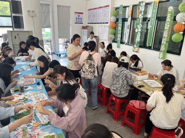 在學生處與后勤集團的聯合組織下,“端午粽動員 巧手制安康”包粽子體驗活動在第二學生食堂舉行。食堂精心準備了粽葉、糯米、肉餡和蜜棗等材料,在師傅的悉心指導下,200多名學生踴躍參與,共包制了2000余個粽子。