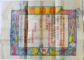 那本立功證書,記錄著原西北野戰軍359旅718團2營6連戰士張富清在解放戰爭中榮獲西北野戰軍特等功一次,軍一等功一次,師一等功、二等功各一次,團一等功一次,兩次榮獲“戰斗英雄”稱號。