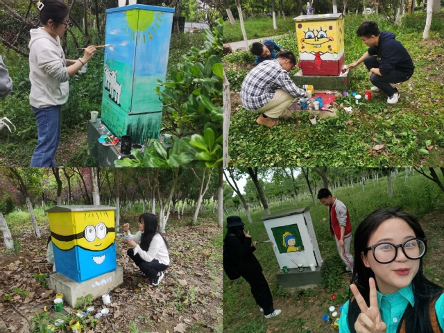 到達公園后,在園區管理處工作人員的安排下,學生們結合自身所學專業知識,在配電箱上繪畫。繪畫的內容有風景、卡通人物、花卉,讓原本不起眼的配電箱華麗變身,成為公園里一道靚麗的風景線。繪畫完成后,同學們紛紛表示活動既鍛煉了自己,又讓公園更加美觀靚麗,同時感受到了勞動后的充實。